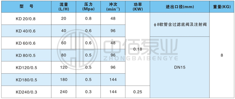 KD型隔膜式計量泵--主要參數