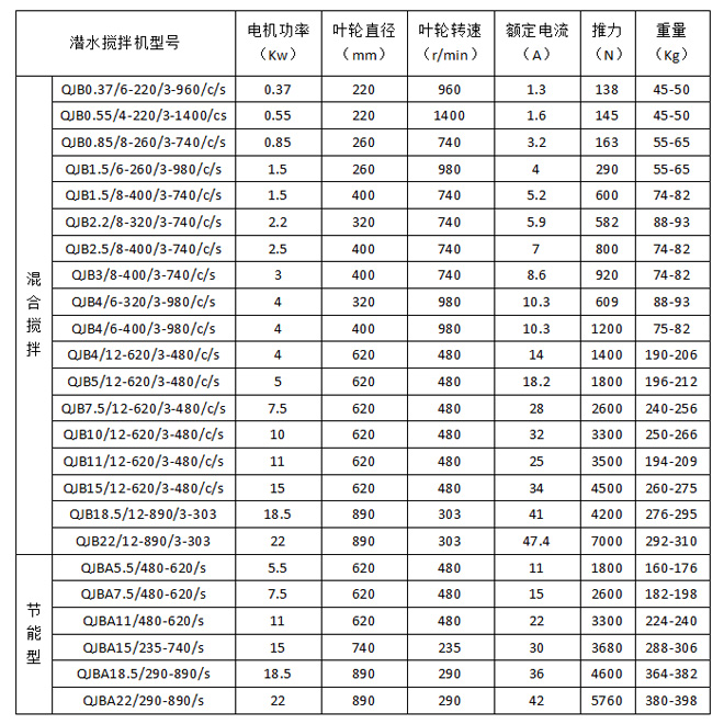 QJB型潛水攪拌機--選型